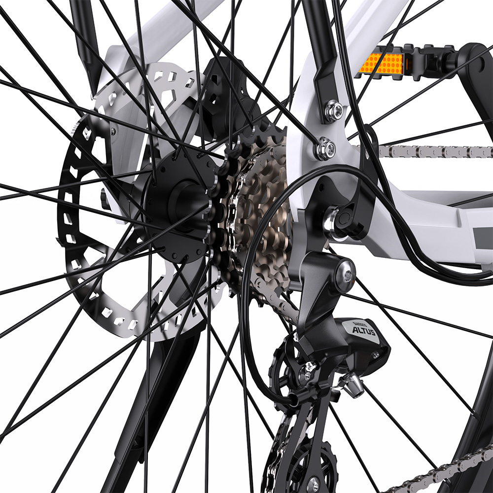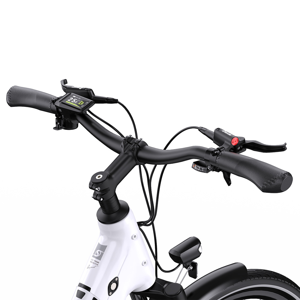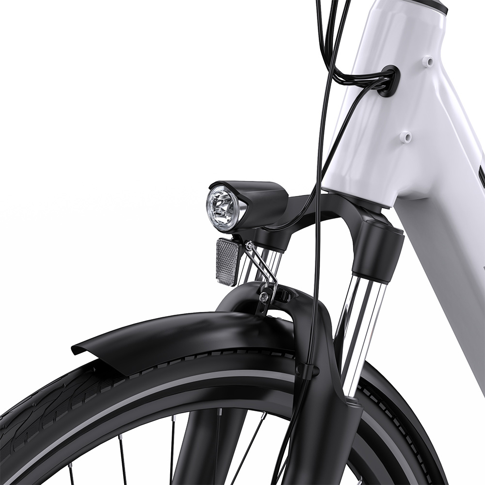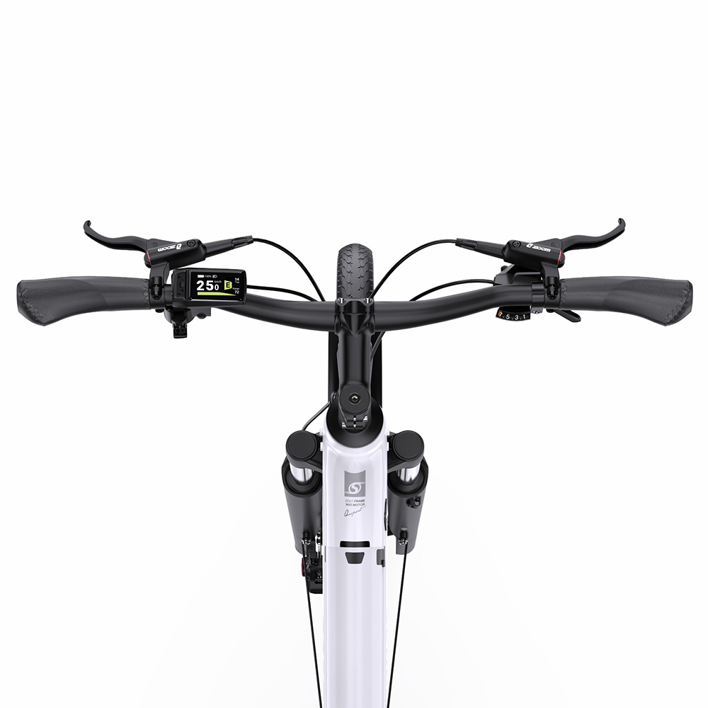 - A BAFANG M210 középmotor és a nyomatékszenzor együtt nagyon természetes rásegítést ad, a 80 Nm-es nyomaték pedig bőven elég ahhoz, hogy a bringa élénknek és használhatóan erősnek érződjön. A 36V 14Ah-s akkumulátor és a hosszú rásegítéses hatótáv megnyugtatóan sokoldalúvá teszi. A hidraulikus tárcsafékek, a rugós villa és a 700×45C-s gumik együtt kényelmes, stabil, biztonságos karaktert adnak. A teljes bringa összképe érett, jól használható és kifejezetten városi-túrás logikájú.