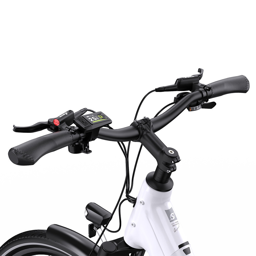 Az OT07-en egy SHIMANO 7 sebességes rendszer dolgozik, ami önmagában nyilván nem olyasmi, amitől bárki meghatódik. De épp ez a szép benne. Nem akar fölöslegesen sok lenni. Egy városi-túrás, középmotoros elektromos bringánál számomra sokkal fontosabb az, hogy a váltó és a rásegítés jól tudjon együtt élni, mint az, hogy hány fokozatot lehet kipipálni a specifikációs sorban. A középmotoros rendszereknél amúgy is jobban kijön, mennyire számít a váltás minősége, hiszen itt a hajtás nem a kerékre küld valami külön elektromos életet, hanem a tekerésedhez kapcsolódik. Ha a váltó rossz, darabos vagy bizonytalan, az egész bringa elveszti azt a természetességet, ami miatt a középmotoros rendszerek egyáltalán érdekesek. Az OT07 viszont szépen hozza azt, amit kell. Nem azért, mert különösebben izgalmas lenne a váltás, hanem mert nem zökkenti ki a bringa ritmusát. Ez szerintem mindig a jó váltórendszer jele. A fokozatok elég sűrűn vannak ahhoz, hogy ne legyen az az érzésed, hogy két teljesen rossz opció között kell választanod, és jól illeszkednek a rásegítési szintekhez. Városban, enyhébb emelkedőn, hosszabb sík szakaszon vagy kényelmesebb tempójú túrán egyszerűen működik az egész. Aki már tekert rosszabbul összerakott e-bike-on, az tudja, milyen idegesítő, ha a motor mást akar, mint a lábad, és a váltó meg mindkettővel összeveszik. Az OT07-nél inkább az történik, hogy egyetlen rendszerré áll össze a három dolog. Ettől a tekerés nem gépies, hanem kellemesen organikus marad. Ez pedig szerintem az egyik legnagyobb dicséret, amit egy városi e-bike kaphat.