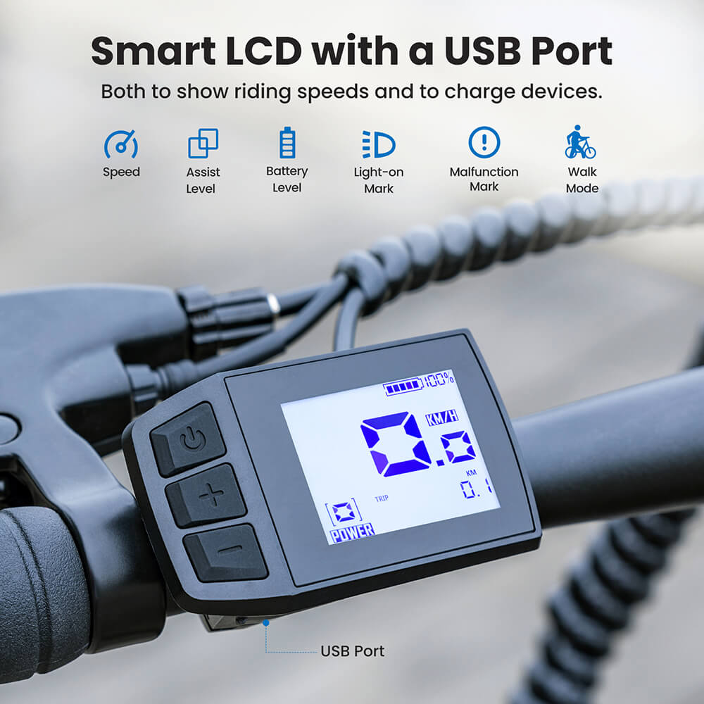 - Okosan kitalált 1,8 hüvelykes intelligens LCD kijelző beépített USB porttal, amivel a legfontosabb menetadatok mellett a lemerülő okostelefonodat is töltheted menet közben.