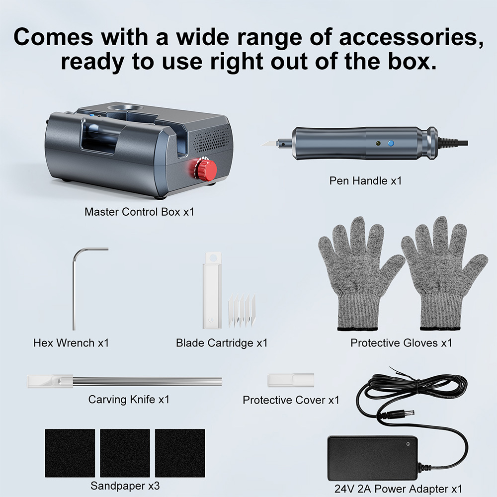 Minden profi gamer pontosan tudja, hogy a folyamatos, szünet nélküli darálás előbb-utóbb a hardver vagy a játékos kiégéséhez vezet, és ezt a gyártó mérnökei is tökéletesen megértették. Az ultrahangos súrlódás értelemszerűen hőt termel, ami hosszú távon megviselhetné a finom elektronikát és magát a pengét is. Éppen ezért a rendszerbe építettek egy végtelenül elegáns, automatikus védelmi mechanizmust: öt perc folyamatos, kőkemény munka után a gép megálljt parancsol, letiltja a rezgést, és egy rövid, kötelező pihenőre küld. Ilyenkor a fogantyún lévő gombbal tudod manuálisan újraindítani az eszközt, de ez a rövid szünet egyáltalán nem egy bosszantó hiba, hanem egy intelligens funkció, ami garantálja, hogy a szerszám évekig a hű társad maradjon a műhelyben. Ez a megszakításos üzemmód egyben finoman rákényszerít arra is, hogy megállj, hátralépj egyet, és hideg fejjel ellenőrizd az eddigi vágásaid minőségét, mielőtt egy kapkodó mozdulattal végzetes hibát vétenél a projektedben. Az mindenesetre biztos, hogy az 1,1 kilogrammos összsúlyú vezérlőegység és a pehelykönnyű markolat olyan szintű ergonómiát biztosít, hogy a csuklód a legkisebb fáradtságot sem fogja érezni, akár órákon át tartó moddingolás közben sem. A dobozban mellékelt cserélhető faragókés, a masszív pengepatron és az elengedhetetlen védőkesztyű mind arról árulkodnak, hogy ez a csomag egy azonnal bevethető, komplett arzenál. Lehet, hogy nem ez az a kütyü, amire minden hétköznapi, alkalmi barkácsolónak égető szüksége van, de ha komolyan tolod a 3D nyomtatást, a cosplay fegyverek gyártását vagy a szuperprecíz modellépítést, akkor a TWO TREES U1 egy olyan masszív szintlépés, ami után egyszerűen képtelen leszel visszatérni a hagyományos, fizikai erőt igénylő szikék barbár világába.
