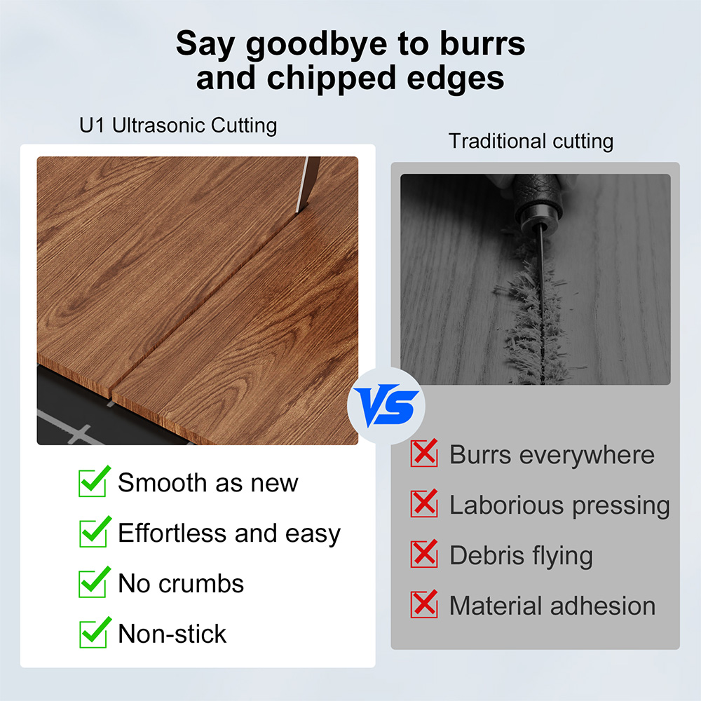 - A 40 kHz-es ultrahangos rezgés és a 40 wattos teljesítmény szinte ellenállás nélkül, tökéletes simasággal vágja át a legkeményebb 3D nyomtatott anyagokat és műanyagokat is.