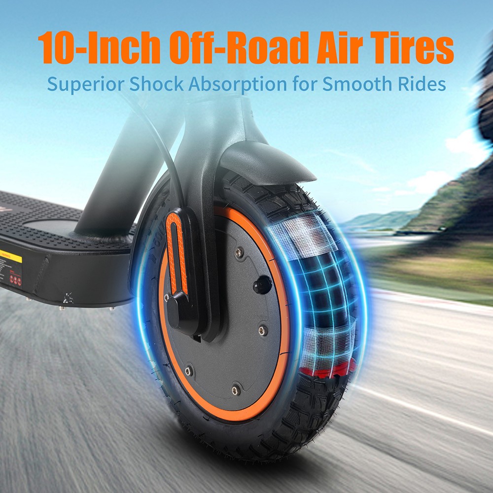 A 10 hüvelykes pneumatikus gumik az egyik legfontosabb elemei ennek a rollernek. A városi utak nem steril tesztpályák – kátyúk, repedések, macskakő, minden jön.