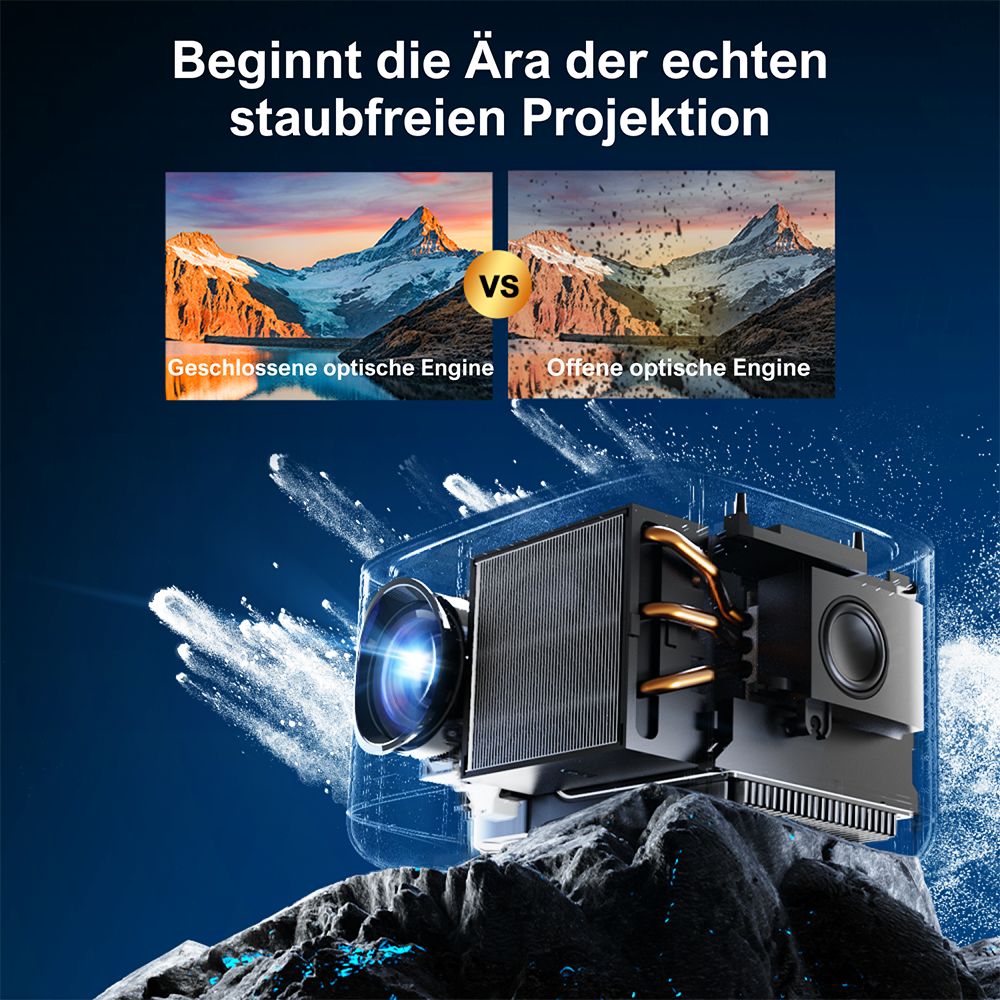 A teljesen zárt optikai motor itt is jelen van, ami hatalmas plusz. A porosodás az olcsó projektorok egyik legnagyobb ellensége, és itt ezt konkrétan kizárják.
