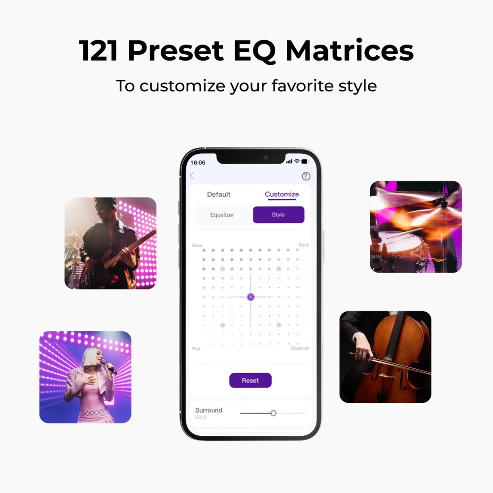 - Fejlett okostelefonos alkalmazásvezérlés Bluetooth 6.0 támogatással, ami egy döbbenetesen részletes, 121 profilt tartalmazó EQ mátrixszal enged teljes kontrollt a hangkép felett.