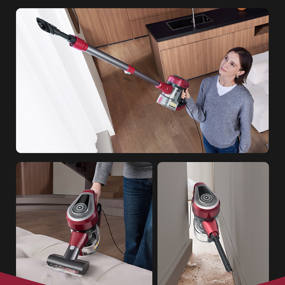 A teleszkópos cső és a 6 az 1-ben fej miatt pedig pár mozdulattal átváltasz padlóról kanapéra, lépcsőre vagy akár függönyre.