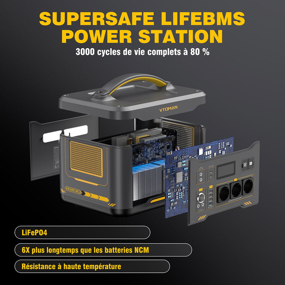 A VTOMAN saját LIFEBMS™ rendszere tíz különböző védelmi mechanizmust kezel. Túltöltés, túlmelegedés, rövidzárlat – mindenre figyel.