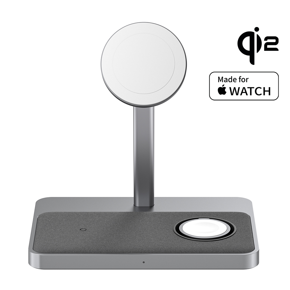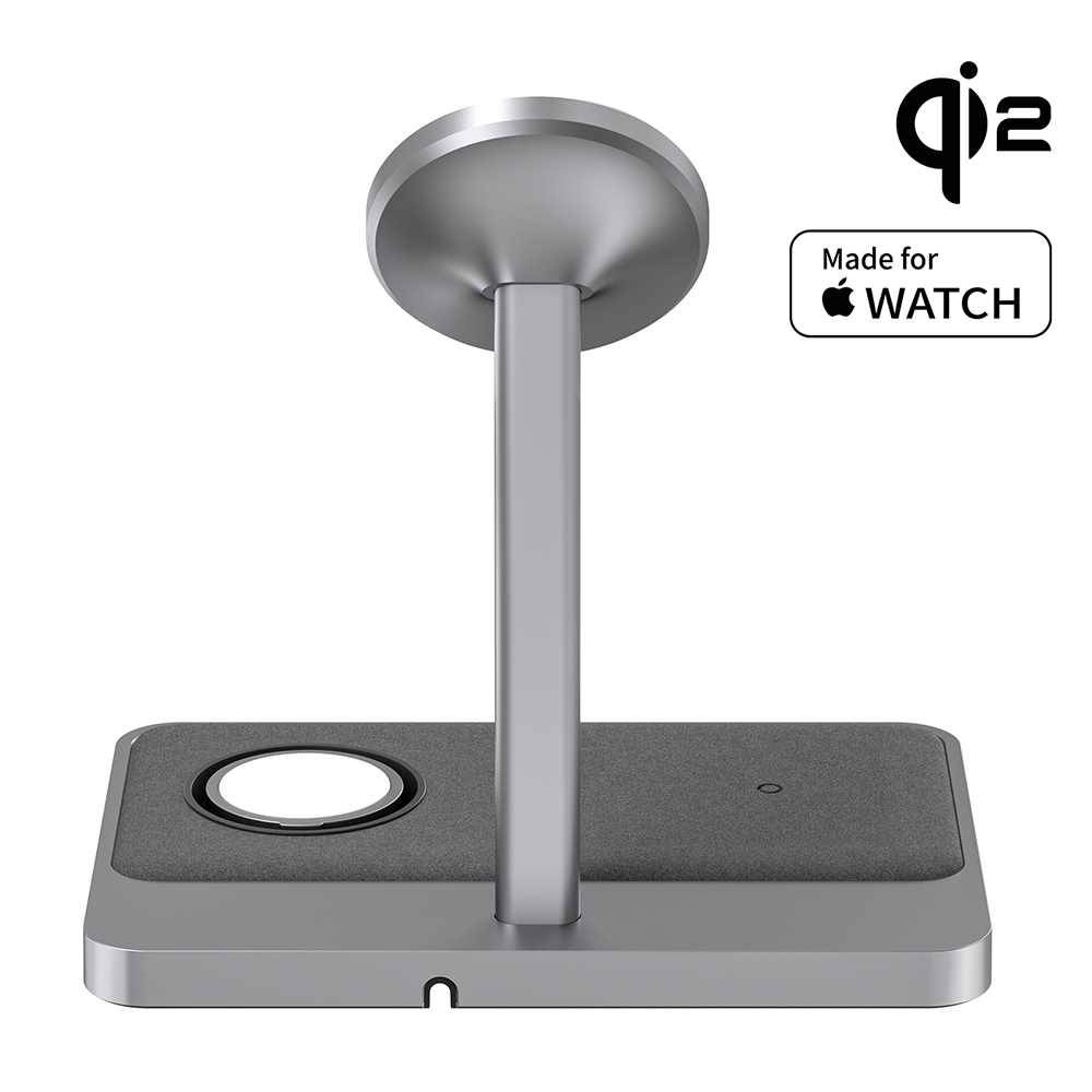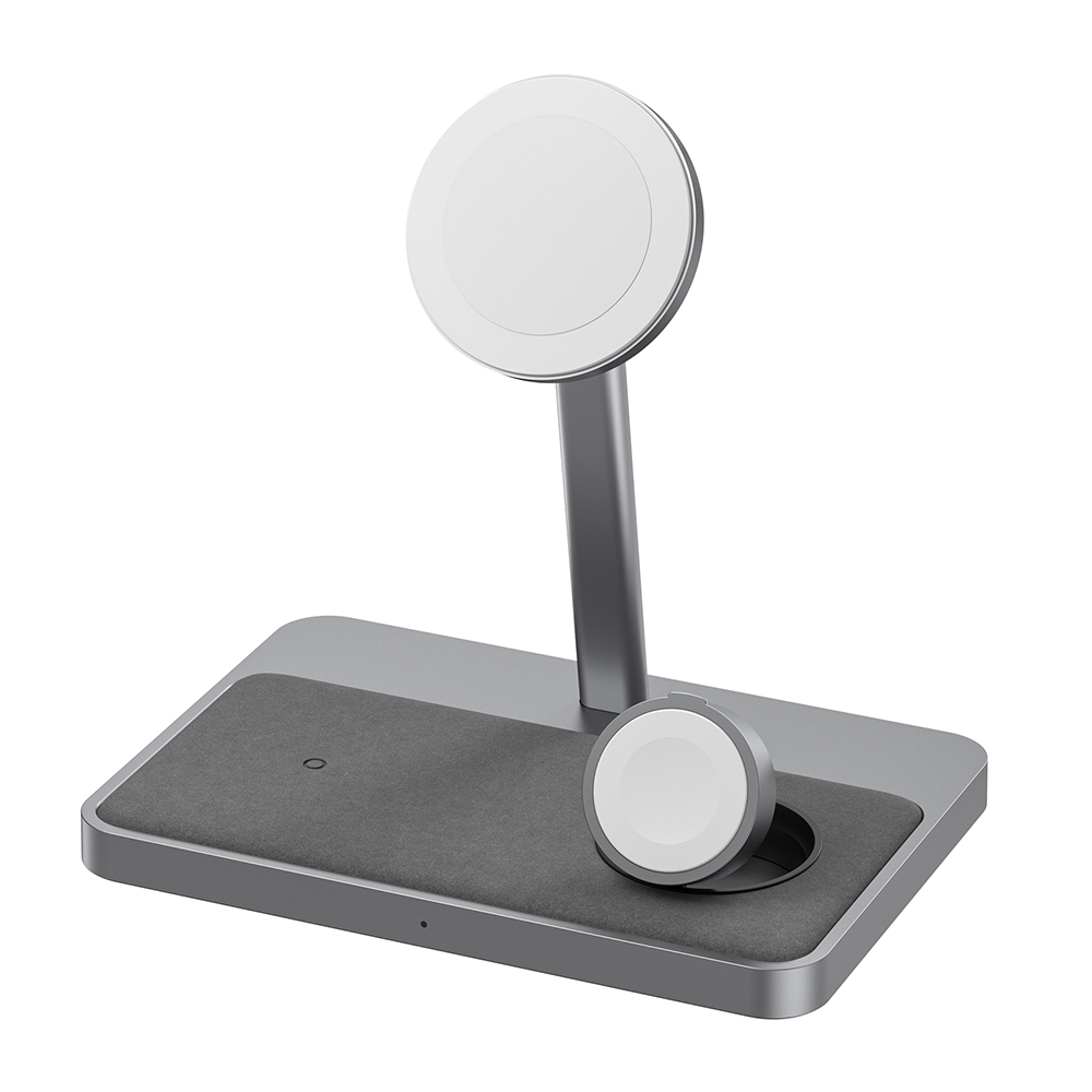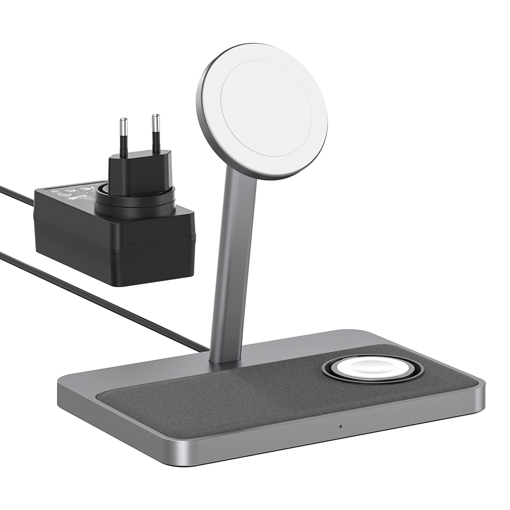 És közben ott a másik két zóna: egy az AirPodsnak, egy az Apple Watch-nak. Nincs kábelkeresgélés, nincs dugdosás. Mindennek megvan a helye.